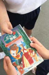 図書の時間がありました。映画と同じように図書の本でも、美女と野獣が人気でした。