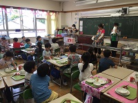 3年生では留学生をおもてなしするゲームを練習しました。「留学生を楽しませるためにはどうしたらいいのかな?」自分たちなりに考えながらも一生懸命な姿が見られました。