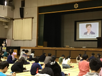 体育館にて、外部講師を招き、肖像権、ネット詐欺、なりすましなど、ネットの危険性について、具体的な事例を交えてお話をいただきました。