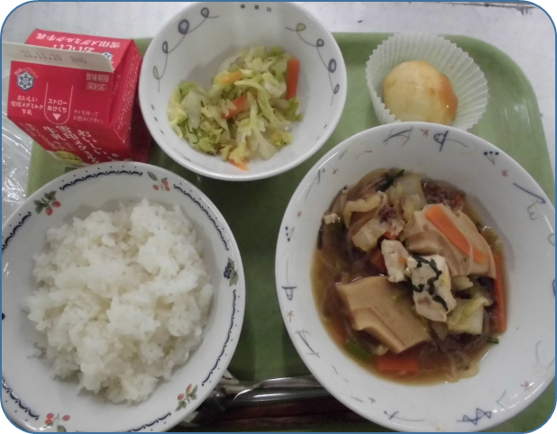 今日は元気に体を動かすためにやくだつ食べ物をたくさん使った献立です。