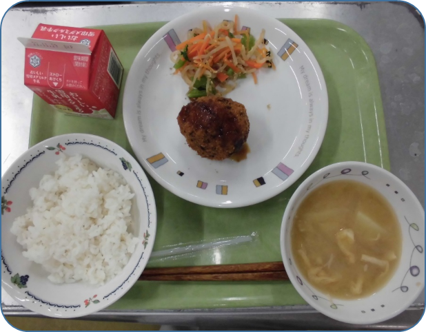 給食ではお米だけでなく国産のものをたくさん使っています。なぜ国産のお米や野菜、果物などを使うのだろうということを考えながら、今日もよく噛んで味わっていただきましょう。