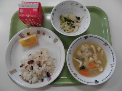 1月15日は小さい正月と書いて「小正月」と言います。みなさんの家では正月におせち料理を食べましたか?おせち料理にはそれぞれの料理に意味や願いが込められています。松風焼きは、能の「松風」という話から「今年一年、悪いことをしないで、まっすぐ生きてゆきましょう」という意味が、こめられています。「田作り」には「今年もお米がたくさん採れますように」、「なます」には「人の嫌がることをしないできれいな心で過ごせますように」「黒豆」には「まめに働けますように」という意味や願いがあります。おせち料理にはほかにもいろいろな料理があります。みなさんはどんな料理を食べましたか?その料理の意味や願いを調べてみましょう。今日もよく噛んで味わっていただきましょう。