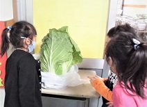 【きゅうしょくつうしん】「えびクリームライス」が好きな人は、多いようですね。えびやほたて貝柱、鶏肉などのうまみがホワイトソースに出ています。よく味わって食べましょう。サラダに入っているひよこ豆は、カレー粉を使って茹でました。ほんのりとしたカレーの香りで食べやすいと思います。よくかんで食べましょう。河内晩柑は、愛媛県産です。皮をむくのが上手になってきた人も多いですね。さわやかな甘酸っぱい果汁には、体の調子を整えるビタミンCがたっぷりです。きれいに食べましょう。