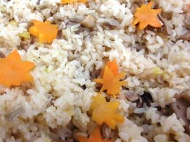 ★麺つゆを冷やす冷蔵庫のスペースはないため、出来上がった麺つゆは水を張った水槽で冷ましました。学級ごとに配缶した麺つゆをお玉で回しながら、衛生面にも注意を払って行いました。子供たちはよく食べていました。「よくかんだら、お芋の甘さ、わかったよ。」「いかもおいしい!」という声が上がっていました。
