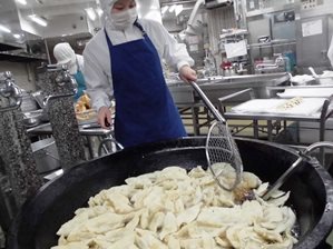 ★マンダイは、別名赤マンボウとも呼ばれている魚です。赤みがかった白身の魚でくせがなく、マグロに似た食感があります。今日はみそカツ丼にしましたが、「やわらかくて鶏肉みたい」という声も聞かれました。