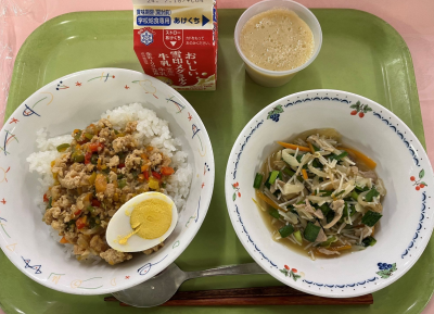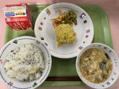 【今日の給食】2月26日(水) 2025年2月26日 14時06分 ・キムチチャーハン ・ナムル ・中華(ちゅうか)コーンスープ ・杏(あん)仁(にん)豆腐(どうふ ・牛(ぎゅう) 乳(にゅう きゅうしょくつうしん2月26日.pdf さっちくんレシピ キムチチャーハン ②.pdf ) )