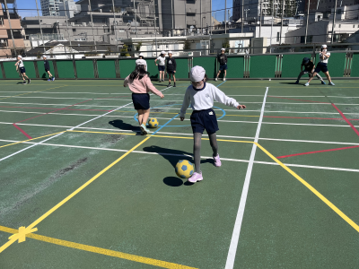 体育~ボール蹴り遊び~ 2024年3月11日 16時23分 校庭体育では、ボール蹴り遊びを行っています。 並びアウトベースボールでは、強くけることを意識していたこともあり、ドリブル遊びでは、強くけりすぎてボールがいろんなところへとんで行ってしまいました。力の調整に苦戦しつつも一生懸命取り組んでいました。 今後パスやシュートもやる予定です。