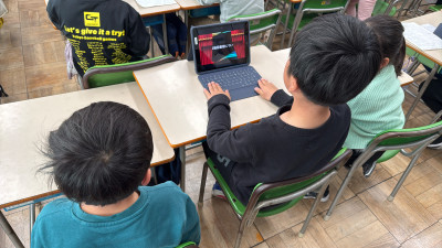 3年生が作成してくれたスライドで「私の町のよいところ」を紹介してくれました。