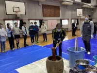 2023年12月19日 08時07分16日土曜日にもちつき大会がありました。多くのお家の方のご協力で、実施することができました。餅米は、どの位浸すのか、蒸す時間はどれ位?自分達が知っている「もち」の姿になるには時間も手間もかかることが分かりました。杵でもちをつくのは難しかったようです。校長先生、副校長先生がついた時には、ドスンと力強い音がして、「お〜」と歓声が聞かれました。3年生の時には、コロナ禍で体験できませんでしたが、今回できて嬉しそうでした。きなことお醤油のお餅を美味しくいただきました。