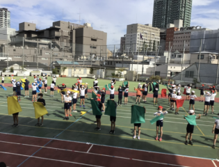 2021年10月27日 17時31分先週からフラッグを使った運動会練習が始まりました。そして、最初から最後までを通した全体練習も始まりました。